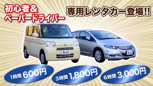 そこで「初心者&ペーパードライバー専用レンタカー」として、車種を限定して1時間600円からご用意します。